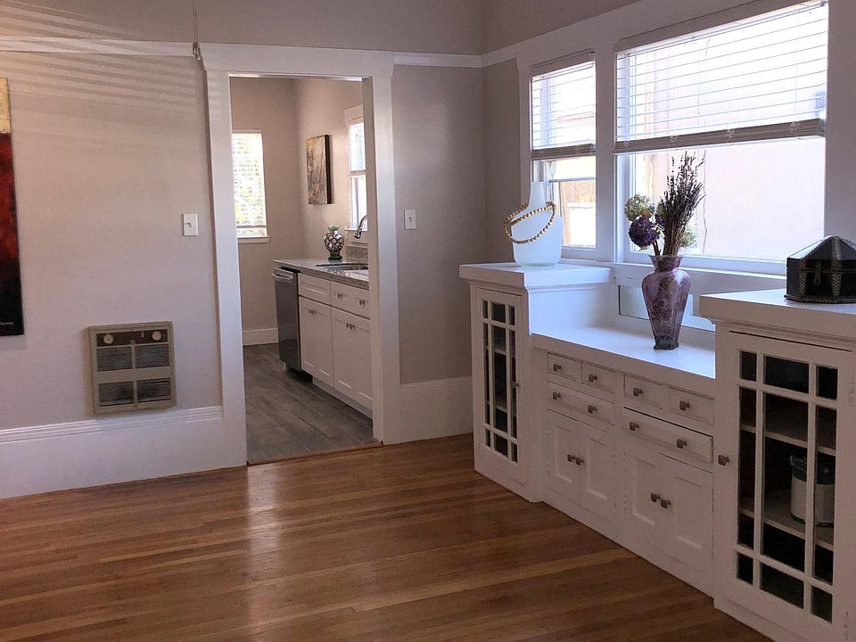 Gorgeous remodeled lower level end unit in Boutique Apartment Building in Piedmont. Super sharp one bedroom one bath unit located in 6 plex steps away from Piedmont Avenue's finest shopping, gourmet restaurants, post office, etc.. , Walls of windows, painted neutral decorator colors inside, new carpet in bedroom and hall, hardwood flooring throughout, ceiling fans in dining, large living room and second family room, natural lighting, recessed lighting throughout, washer and dryer in unit. Newly remodeled kitchen features stainless appliances white cabinets, gas range, dishwasher, and charming breakfast nook and granite countertops. Separate small work area or closet in family room with double glass doors. Double glass door entrance to unit in shared porch. Small yard in back for tenants..no garage, tenant to park on street. Very rare to market. Unit is unfurnished. Owner pays for water and garbage. close to 580, 80, 13, 24 and carpool pickup areas as well as BART and bus.* Owner pays for garbage and water. $250 pet deposit No smoking and street parking only