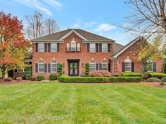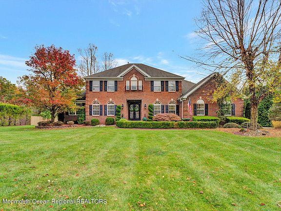 The Crown Jewel of Monterey Estates, a masterpiece of luxury living. This exquisite 5-bedroom, 3.5-bath custom brick-front colonial home is nestled near a tranquil cul-de-sac with a premium lot that backs onto a serene nature preserve. Prepare to be captivated by the remarkable entrance, graced by custom wrought iron doors and matching wrought iron railings that adorn the balcony. As you step inside, the grandeur of the two-story foyer with its elegant floating staircase and custom railings will leave you in awe, setting the stage for the breathtaking experience that awaits you. This estate exudes classic elegance, enhanced by a plethora of upgrades. The open floor plan features gleaming hardwood floors, a banquet-sized dining room, a formal living room that leads to a two-story great room, and a majestic family room with a wall of windows, complete with plantation shutters and a cozy gas fireplace. A designer's dream kitchen awaits, boasting brand new renovations with a center island, stainless steel appliances, granite countertops, custom backsplash, sliding doors, plantation shutters, and a convenient walk-in pantry. The first level also includes an in-law suite with a full bath and a spacious laundry room with outdoor access. Escape to the master bedroom, featuring a vaulted ceiling, double-door entry, a large walk-in closet, and a private master bath with double sinks, a Jacuzzi bath, a stall shower, and granite countertops - the perfect sanctuary for unwinding after a long day. Three additional large bedrooms with closet organizers and a full bath with granite countertops complete the upper level.