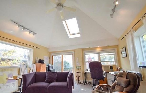 This Pondside combination of a sunny, beautiful 3 bedroom condo and detached 256 sq ft carriage house overlooking a private yard is a perfect home for remotely working professionals who need extra work spaces and a private outdoor yard. The apartment is on the first floor of a two family condo building on tree-lined Moraine Street, steps from Jamaica Pond. The modern detached work space/studio has picture windows, skylight, cathedral ceiling, and overlooks a private well-landscaped fenced in yard, great for dining and entertaining. Featured in the apartment are Modern Mediterranean eat-in kitchen with breakfast bar and bay window dining nook overlooking garden/yard, All stainless appliances, granite, dishwasher, disposal, pantry, Private glass sun porch, 2-3 parking spaces available. Living, dining room, and extra large foyer for study, exercise, work area, hardwood floors throughout, private laundry in the basement, tons of closet space throughout and additional basement storage!