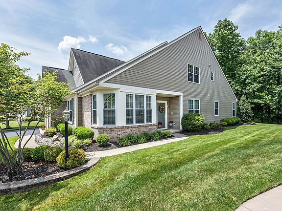 This is the one you've been waiting for! Located on a charming street in the much sought-after Village Greenes community, this beautifully landscaped brick facade home is situated on a private premium lot backing to woods. Quality abounds as you enter this home with hardwood flooring, recessed lighting and crown molding throughout most of the Main Floor. Foyer is open to the bright Living Room located across from the sun-filled Study featuring gorgeous plantation shutters. The spacious Dining Room perfect for family dinners is open to the large Family Room with huge windows offering views of the private wooded backyard. The completely renovated gourmet Kitchen boasts custom cabinetry, with ceramic tile backsplash, granite countertops, stainless steel appliances, hot water dispenser, wine refrigerator, under cabinet lighting, ceramic tile flooring and expansive custom kitchen island. Also features spacious eating area open to the sitting room sunroom with gorgeous windows and butlers pantry perfect for entertaining. The sliding glass door leads to the peaceful and serene private backyard which is meticulously landscaped and features a large paver patio overlooking protected wooded land. Also located on the main level is the Master Suite with gorgeous views of the private backyard and features tray ceiling with accent lights, walk-in closet and Stunning Master Bath which has been renovated with custom cabinetry, dual sinks, granite countertops, vanity area and seamless glass tiled shower. First floor also features the second Bedroom, Full Bath and Laundry Room, with built-in cabinetry, off of Kitchen which leads to the 2-car garage. Upstairs you'll find the Loft which can be used as a 3rd Bedroom or additional living area, another Full Bath and access to additional attic storage area. This lovingly cared for home also features surround sound system in Kitchen, Family Room, Dining Room, Master Bedroom, Master Bath, and Office. NEWER HVAC (3 years old), and all NEW Windows. All this located in the active adult community of Village Greenes which provides a beautiful clubhouse with exercise room, card rooms, ballroom, craft room, library, tennis courts, heated outdoor pool, book club and many social activities. Association also maintains lawn care and snow removal. Live carefree in this gorgeous community!