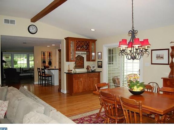 Beautifully updated & maintained ranch on tree lined street, well established & quiet neighborhood. Family room addition w/ hardwood floors, vaulted ceiling, cherry bar w/granite counter, fireplace & Andersen slider to patio. Kitchen updated w/ tile floor, antiqued white cabinets, granite counters, breakfast bar, pantry cabinet, & built in desk. Living room has hardwood floors, built-in bookcases, & wood-burning fireplace. High-hats have been added throughout kitchen, living room & family room. Master addition w/ Andersen door to patio also has a vaulted ceiling. Master bath was updated in 2011 w/ tile & full glass door. Hall bath was updated in 08 w/ slate floor, new toilet, tub surround & vanity. Private backyard is fenced. A laundry enclosure was added w/ stationery tub Andersen door to side yard. Home has plenty of closet space, but for add'l storage garage has pull down stairs to attic & a dry crawl space. Updates: roof-08, windows-04, A/C -04, heater-08,hot water heater-13,garage door-04,storm door-04.