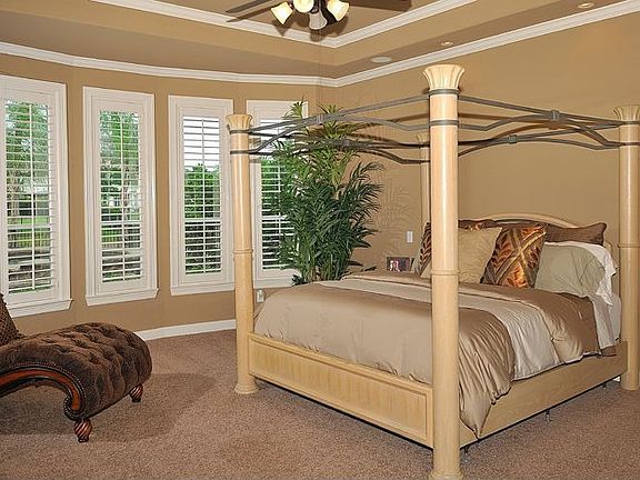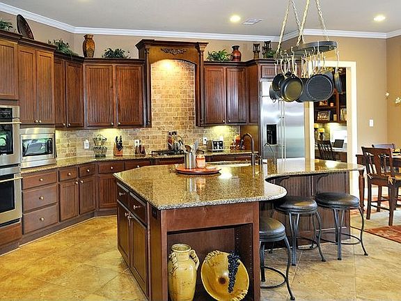 Waterfront Village Builders former model home on a cul-de-sac in Creekside Park! Two staircases, hardwood & tile flrs, Plantation shutters, solar screens, wine grotto, built-ins & abundant windows provide views of Lake Paloma throughout. Island kitchen w/granite counters, bkfast bar & SS appls opens to bkfast rm; den w/cozy FP; frml dining w/chair rail; gamerm up w/wet bar & balcony; 3 car garage + porte-cochere; resort style yard w/cvrd lanai, outdoor FP, summer kitch, infinity edge pool & spa.