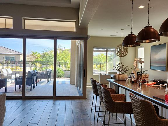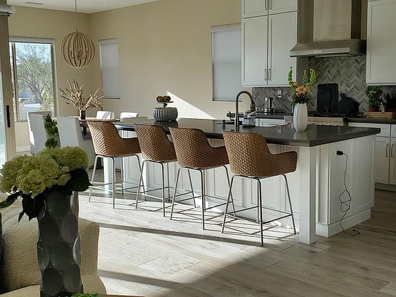 PICKLEBALL ANYONE? Gorgeous premium view corner lot, newly constructed in guard gated 55+ Del Webb community. Beautiful fully furnished home with owned solar. 4 large Glass corner sliders open to allow for even more space and to enjoy your fully furnished backyard. Stunning gourmet fully stocked kitchen with soft dovetail kitchen cabinetry, 2 ovens and upgraded stainless steel Kitchenaid appliances including convection cooking. Surround sound speakers with Sonos capability in all rooms. Two giant Smart Tvs in gathering room and master bedroom. Full office set up, desk and chair, with monitor for you to simply dock your laptop. Shared amenities within community include beautiful tennis and multiple pickleball courts, full gym, 2 resort pools, hot tub spa and a 100 course golf simulator. Access to all these amenities and a full club house with ballroom/catering kitchen. Backyard newly finished, with 2 BBQ island. Clean 2 car garage with a separate room for parking golf cart. Owner pays for trash, HOA. Renter pays for utilities, including cable. RefundablePet deposit of $500.00