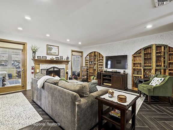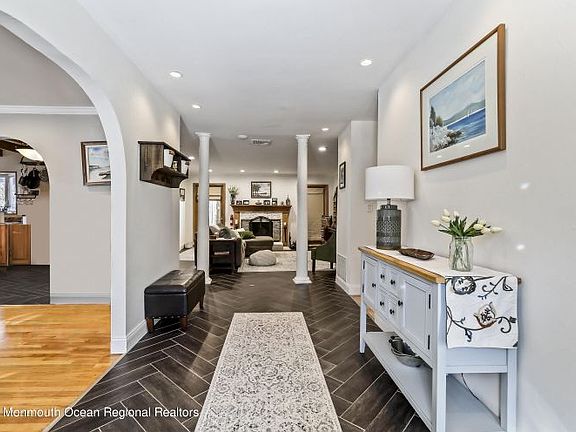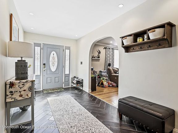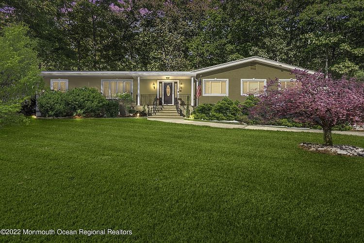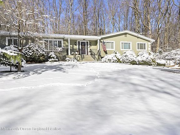 Sprawling custom ranch home in a desirable Holmdel neighborhood. Features include, freshly painted, with crown molding and recessed lights. New 6 inch gutters. 4 generous bedrooms with Hardwood floors. 3 full and one 1 2 baths. New Vinyl floors in foyer, living room, and kitchen. Living room has lovely stone fireplace. Eat in kitchen has Granite and newer Stainless appliances. Large 3 Seasons room with Woodburning stove leads to your private yard. Master bedroom with full bath, new double sink vanity and skylight, and access to your yard as well. Relax in the summertime in your wonderful salt water heated pool. Enjoy your summer BBQ's on your new timbertech deck. Finished basement has full bath, and office space. Close to GSP, Rt 35 for amazing shopping and close to Jersey shore Beaches