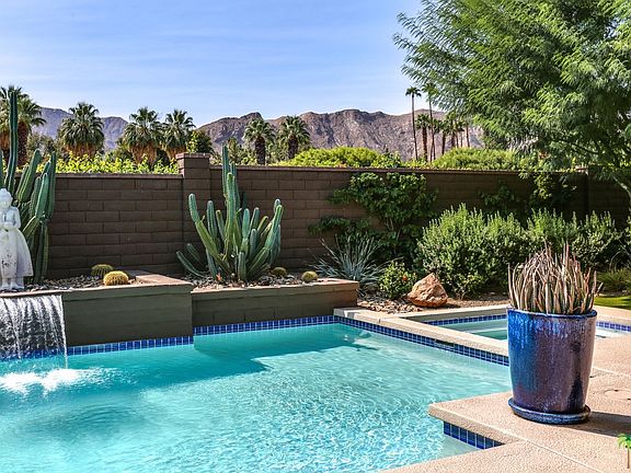 Welcome to The Springs. This large freestanding home with private resort-style pool & spa is the coveted La Jolla floorplan, and it is beyond beautiful! You will love the charming entry through the central atrium & lanai, the high ceilings throughout the home, as well as the wet bar & fireplace in the large living area. A cozy den area in the nicely updated kitchen, sliders in every room with remote shades, and twin pocket offices are details you will surely appreciate. The 3 large bedrooms all feature fabulous built-in cabinetry & updated bathrooms, and the primary suite is bright & private with gorgeous views of the pool and mountains beyond. There is even an air-conditioned garage for two cars and a golf cart. The club features community pools, tennis & pickleball courts, fitness center, cafe, a private 18-hole golf course, and the freshly remodeled club house is scheduled to open shortly. HOA fees also include exterior painting, roof, earthquake insurance, and 24 hour guard gate.