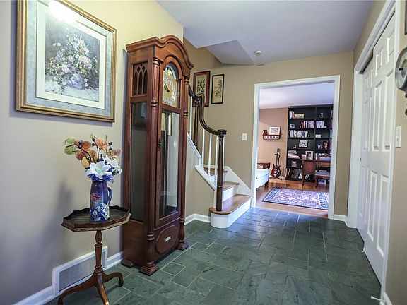 First of all, the location of this home is Ideal if you are looking to live on the east side. Its close to the expressway and 10 minutes from everywhere in Rochester. This 4 bedroom colonial backs to a wooded private lot. Spacious kitchen with newer appliances, a cozy family room and for morning coffee a 3 season room that is surrounded by windows and nature. Along with all of that this home includes a den/library and for entertaining a formal dining room with a wood burning fireplace. Upstairs you will discover four amzingly large rooms. The master bedroom has a master bath that you will absolutely fall in love with. There is extra room in the the finished basement that offers endless possibilities. On top of all of this, you will love the privacy in the backyard, whether you are sitting on the patio, or enjoying a bon fire. Useful mud room, kitchen pantry, first floor laundry and large 3 car garage. Call today!