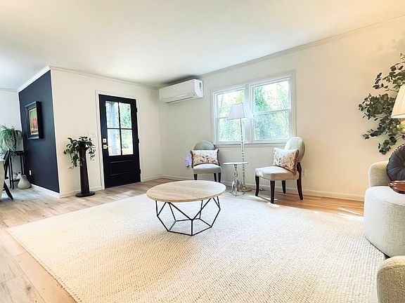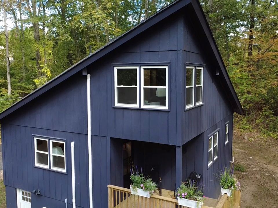 Tucked at the end of a cul-de-sac, this completely remodeled contemporary home is ready to win hearts. With over 1,800 sq ft across three finished levels, it balances style, space, and comfort. The gourmet kitchen, with its butcher block island and high-end appliances, invites everything from late-night snacks to holiday feasts. An open living area leads to a covered deck overlooking a private acre-perfect for morning coffee or sunset reflections. The nearly 250 sq ft primary bedroom boasts soaring vaulted ceilings. While the second level shines with hardwood floors, the main level flows with durable luxury vinyl plank. Downstairs, a finished 612 sq ft basement retreat offers a bedroom, full bath, and cozy den/family room with walk-out separate entry which could work well for that accessory dwelling space. Efficient mini splits keep the top two levels comfortable. All this, just minutes from Cedar Ridge Golf Course and the beaches, dining, and shops of downtown Niantic. Come see where modern convenience meets a touch of heart.