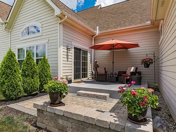 Spacious end-unit offers open floor plan with first-floor owner's suite, laundry, two-story family room with gas log fireplace, dining room, which could easily act as home office, large kitchen w/cherry cabinets & granite countertops, and sunroom, which could easily be used as dining room. Sunroom opens to private deck steps down to expanded paver patio. The upstairs offers two LARGE bedrooms, a loft and full bath. Full basement offers great storage or can be finished for additional living space. Clubhouse & pool. Walking distance to downtown Powell. Built by Cugini & Capoccia.