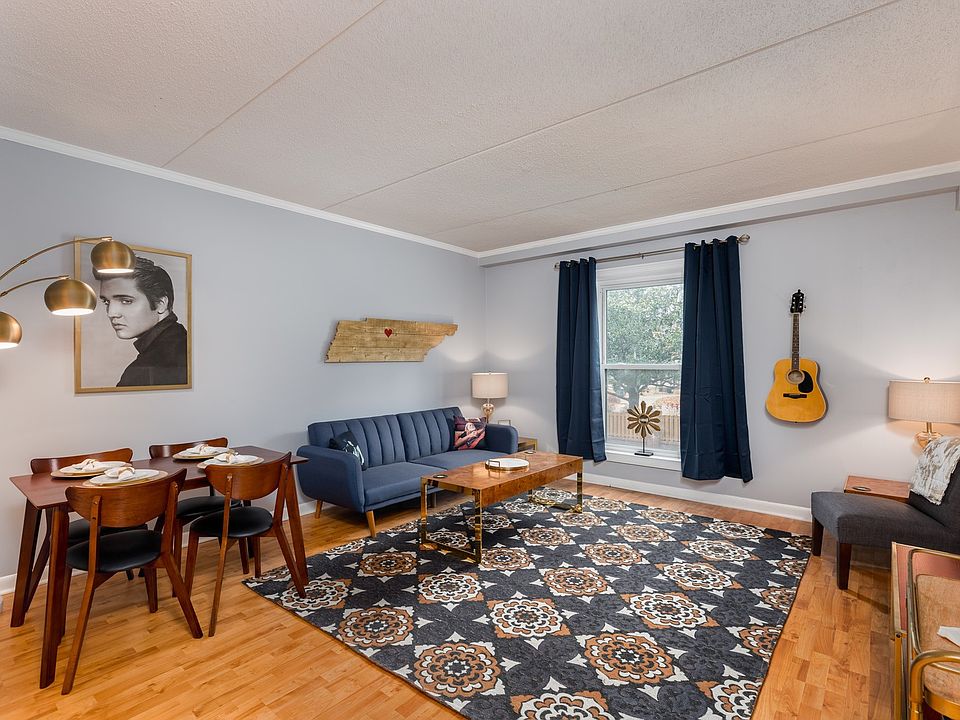 This gorgeous condo is currently a Superhost Air B&B. It's zoned Residential/Commerical so the possibilities are endless for this property. The guitar-shaped swimming pool was a favorite of Elvis when he recorded at RCA Studio B. It's across from BMI on Demonbreun Circle. Steps away from restaurants and bars, and a short walk to The Gulch & Lower Broadway. Buy it furnished or unfurnished. HUGE bedroom and spacious living room with a view of the pool. Showings begin 9/26 at noon.