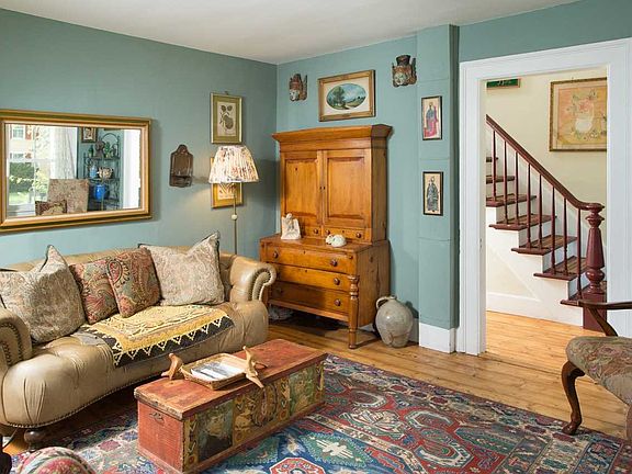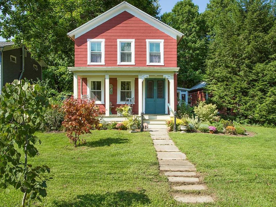 Charming 1907 farmhouse on a quiet side street in Pine Plains Village. This home has wide board floors, a rocking chair front porch, and a lovely 3 season room (screens for summer;glass panels for cooler months). Classic first floor layout with front entry, LR, DR, Kitchen and an additional room with closet. Second floor has 2 bedrooms and a small study. An antique barn with concrete floor and loft completes the property. Many old style architectural details throughout. Lovely landscaping.