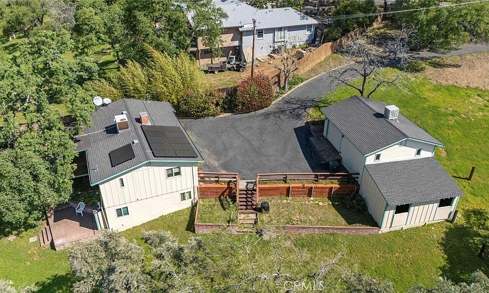 Escape to your own private retreat with this stunning 2-bedroom, 2-bathroom home situated on 2.73 acres of beautifully landscaped land. Offering breathtaking panoramic views of Table Mountain and the valley, this property combines peaceful country living with modern conveniences, making it an ideal place to call home. Step inside and experience 936 square feet of well-designed living space. The kitchen is equipped with all the essentials, including a range, oven, dishwasher, and double basin sink, providing a functional space for cooking and entertaining. The inviting living room features a cozy fireplace, a ceiling fan for added comfort, and a sliding door that opens to a covered deck where you can relax while enjoying the incredible views. The home is thoughtfully designed with built-in storage, a dedicated laundry room, and a spacious family room, making everyday living more convenient and organized. Outside, the possibilities are endless. Whether you are looking for a horse property, space for livestock, or a dream garden, this fenced and cross-fenced property offers plenty of opportunities. The yard is landscaped with garden and flower beds, featuring rosemary, mint, roses, irises, and a variety of other beautiful plants. Mature olive, and oak trees add natural beauty and shade to the property, enhancing the serene atmosphere. The detached garage includes a shop area with a cooling unit, providing a functional workspace for projects or storage. Additionally, a finished outbuilding with a separate electric meter offers even more possibilities, whether you need extra storage, a workshop, or potential guest accommodations. Energy efficiency is a key feature of this property, with a solar system and two battery backup stations helping to reduce utility costs and provide peace of mind. A paved driveway leads to the detached garage and offers plenty of parking space for an RV, boat, or extra vehicles. The property’s location is another major highlight, just minutes from Lake Oroville, horse trails, and shopping, giving you easy access to both outdoor adventure and everyday necessities. This property is more than just a home—it is a lifestyle. Whether you are seeking country serenity, outdoor recreation, or a self-sufficient property, this one has it all. Enjoy the freedom and tranquility of country living while still being close to modern conveniences. Do not miss this rare opportunity to own a slice of paradise.