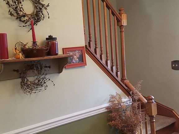 Welcome to Glen Eagles Way and 11 N. Ben Hogan Dr. This large 2 story Colonial has a lot to offer. 4 bedrooms, 2 ~ baths, 2 car attached garage and a rear yard backing up to farm ground. Features include a large kitchen equipped with a gas range, island, planning desk, hard wood floors, breakfast area and loads of natural light. The family room features a stone gas fireplace, hardwood floors and access to the screened porch. These adjoining rooms means family and guests are always in touch with each other. Formal dining room, living room ~ bath and laundry room round out the main level. Upstairs includes 4 bedrooms 2 full baths and over view to the family room. The Master Suite includes a whirlpool tub, 2 seater shower stall and double sink vanity. The lower level is partially finished with a dry bar, counter top with seating for 4 and a ton of storage. The rear yard includes a fire pit area, shed and views of the farmers field. USDA financing is available.