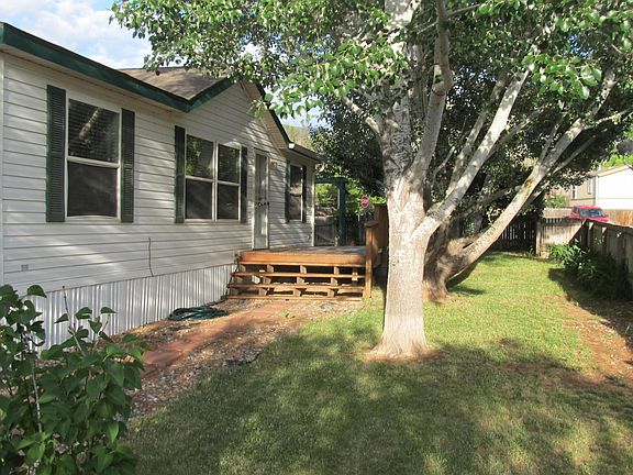 AFFORDABLE, REMODELED, MATURE LANDSCAPING. 1080 sq. ft. 3Bd/2Ba home on corner lot, healthy poplar shade trees, cherry trees, lilies and bushes lining the entire fenced yard. Enjoy morning coffee on the freshly stained front deck or new redwood back deck or the evening BBQ while watching the sunset, this home backs up to empty lots so no neighbors in the backyard. Home in great condition, laminate wood floors in living room, laminate tile floor in Master. Lots of storage including custom made shed in back yard. Newer hot water heater, Gas stove, Gas or electric hookup for dryer. Masterguard fire alarms and C.O. detectors, close to Bea Underwood Elementary and parks. (Lot Rent 432.00 a month. Only buying the mobile home.)