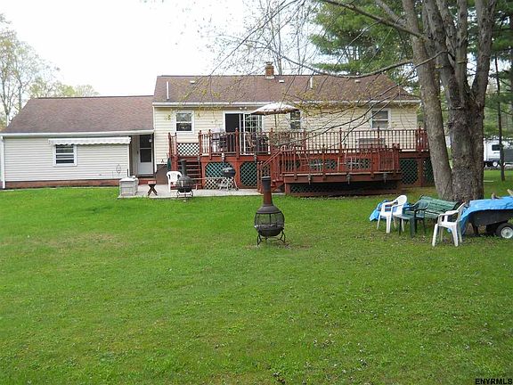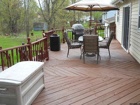 Well-kept raised ranch on a 100x200 lot. 1st floor features spacious living room 2 bedrooms, 1 full bath, eat-in kitchen with sliding glass doors stepping on to a large deck overlooking a big yard for those family gatherings. Lower level offers a third bedroom,or recreation room with a bar, an office with a Jacuzzi, laundry room, and 1/2 bath. Exterior has vinyl siding, replacement windows and an attached oversized 1 car garage. Home has new water pump put in 2018 and village sewer.