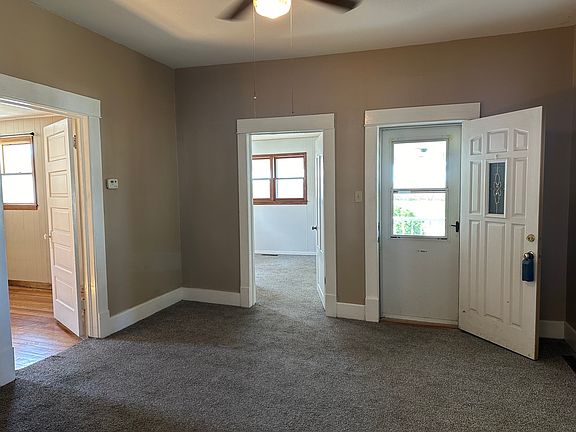 This home offers three bedrooms and 2 baths. The huge room in the back of the house has a walk in closet and a full bathroom. It could easily serve as another bedroom or a great family room. You will love the high ceilings and traditional charm. The back yard is completely fenced in with a deck and a nice garage with two overhead doors. The front of the house has a classic front porch with an amazing view and some of the most beautiful sunsets can be seen over the fields across the street. Come take a look!