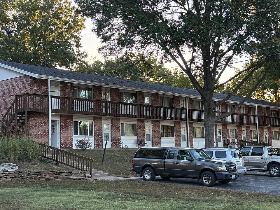 Freshly painted throughout, new carpet, hardwood in kitchen and tile in bathroom. Updated bathroom. Refrigerator and electric stove provided. Spacious bedroom with double closets . Trash and water paid by owners. Quiet adult apartment community . Off street parking, easy access to major highways, shopping., public transportation and public library . Approximately one half mile to FORD PLANT. Claycomo city limits, no E Tax One year lease required , deposit and one month rent due at signing . Owner pays water and trash.