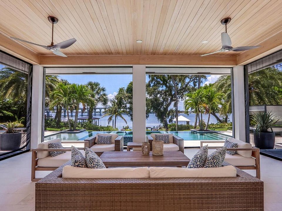 AMAZING SEWALLS POINT WATERFRONT HOME WITH GUEST COTTAGE This stunning waterfront home in sought after Sewalls Point with 20 ft. elevation and amazing sunsets will not disappoint. With 3 Bedrooms/3 Bathrooms, this open concept home looks out over the infinity pool and hot tub, the oversized electric screened lanai, the fire pit & the St. Lucie River. Drive your boat ( up to 28') up to this deep water dock with covered boat lift. Just a short boat ride to the inlet and the sandbars! A lucky friend can stay in the adorable 1 Bedroom/1 bathroom guest cottage complete with washer/dryer & oversized bar refrigerator. This home is conveniently located about 2 miles from Stuart Beach and about 10 minutes to downtown Stuart. Available summer 2025 May 1-Nov 31
