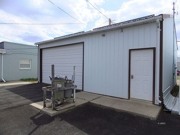 2 bedroom home with 3/4 bath. Eat in kitchen and a living room. 30X30 garage and work shop. 2 overhead doors with openers. Insulated and heated with a small shop area in the building. 18X30 metal carport on cement and asphalt used for storage, etc. Access to the buildings is from the asphalt driveway by the house or from the alley. There are overhead doors on the front and back of the garage. A small house with a great garage and shop. Property is zoned General Commercial and in the flood zone.