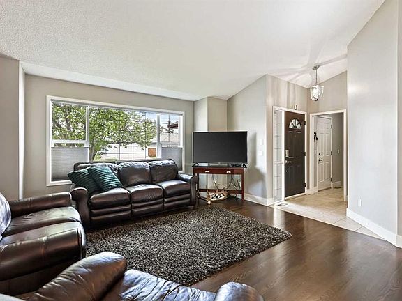 Welcome to the sought-after community of Strathmore Lakes. This immaculately kept bungalow is tucked away on a quiet street and offers just over 2,500 sq ft of developed living space. With 5 bedrooms and 3 bathrooms, it’s the perfect home for families or retirees seeking comfort and space. The open-concept layout features a bright, updated kitchen with modern finishes and direct access to a composite deck—ideal for summer BBQs and outdoor entertaining. The main floor also includes a spacious living and dining area. The primary suite offers a large walk-in closet and a private 3-piece ensuite, providing a quiet retreat. Two additional bedrooms and a renovated 4-piece bathroom complete the main level. Downstairs, you’ll find a generous family room, two more bedrooms, another 4-piece bathroom, and plenty of storage throughout. The south-facing backyard is beautiful and fully landscaped, featuring low-maintenance composite decking, a powered shed, and direct access to a back lane—offering both privacy and convenience. Central A/C keeps the home cool during warm summer days. The double garage has been freshly painted and includes built-in storage. Meticulously maintained and clearly cared for, this home shows true pride of ownership. Located close to parks and within walking distance to two elementary schools, it offers comfort, convenience, and lasting value. This home has everything you need to enjoy the best of small-town living with all the amenities. Take the next step toward making this beautiful home yours—schedule a viewing today!