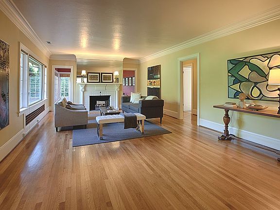 Beautiful Laurelhurst home on large corner lot. Completely fenced with trees surrounding, very private in and out. Lots of light and windows. Sunroom, formal dining, built ins, open kitchen, bistro nook, large family room with built in bar area. An entertainer's dream home. Refinished hardwoods, new roof and water heater. Lots of choices for shopping and restaurants. Close to parks and schools.