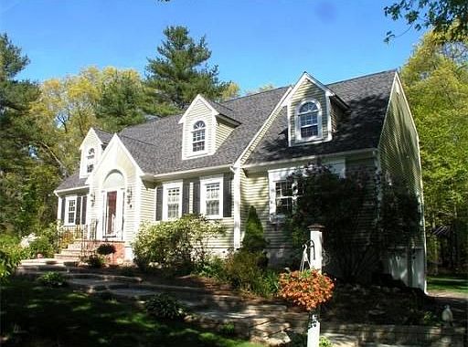 Elegant Contemporary Cape,mint condition,on cul-de-sac in desirable subdivision.5Br, 2.5 baths & separate laundry room. Spacious kitchen w/ granite, island, hardwoods & large eating area; opens to 4 Season Room & front-to-back FamRm w /Frpl. LivRm & DinRm w/ hardwds. Relax in master bedrm w/ private bath. Newer vinyl siding, 40 year architectural roof, Andersen windows, garage doors & wraparound Trek Deck. Finished walkout basement. Well landscaped private wooded yard w/ sprinklers.Cent A/C.
