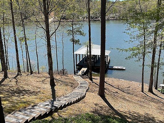 Best kept secret on the North end of beautiful Wedowee. This 4 bedroom 3.5 bath is situated in a large, quiet cove. Home features master on main level, kitchen with breakfast nook, den and dining room with walk out top floor deck. Upstairs offers two large bedrooms with shared bath. Basement level offers another large bedroom with bath and walkout to lower level deck. Home comes with two car garage and an extra parking pad. Large custom boat house with 10 ft sun deck and electric boat lift. Also has attached jet ski port.