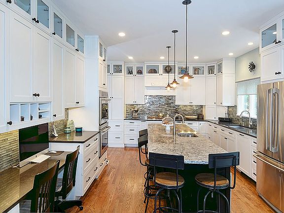 A short walk to Ridgefield's' Ballard Park and Main Street, this Sturges Brothers built colonial is located at the end of a quiet, friendly cul-de-sac, with only two other homes. The property offers privacy, yet is extremely convenient to walk to the many restaurants and attractions Ridgefield has to offer. The house has only had 2 owners and has been updated throughout by the current owner with $360K invested. The heart of the home is the beautifully updated, open and spacious kitchen, dining area and family room with gas fireplace and wall of bookshelves. Another living area provides peace away from the main family area. A half-bath is located on this level. The dining area provides easy access to the private outdoor deck, with a second lower deck area large enough for a hot-tub. A mudroom and laundry room are located off the kitchen, with access to the two-car garage. A level grassy area in the rear of the property is small enough for easy maintenance but large enough for a trampoline and games. The second floor comprises a master bedroom complete with new ensuite master bath and walk-in-closet. There are two further bedrooms each with new ensuite bathrooms and walk-in closets. The walkout basement has a partially finished space, ideal for a game room or playroom. There is a finished area with a fourth bedroom or office and a full bathroom. This is a total turn-key opportunity just one block from Main Street... location... location... location...