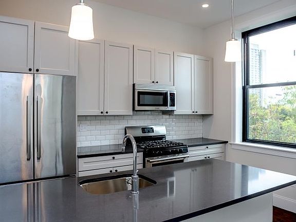 This is a 3 bedroom unit featuring 1 bath, stainless appliances and granite counter tops. High efficiency heating, cooling, and hot water (tankless gas boiler.) Recessed lighting throughout the unit. Open kitchen and living area provides a spacious and well lit unit. Laundry in unit.
