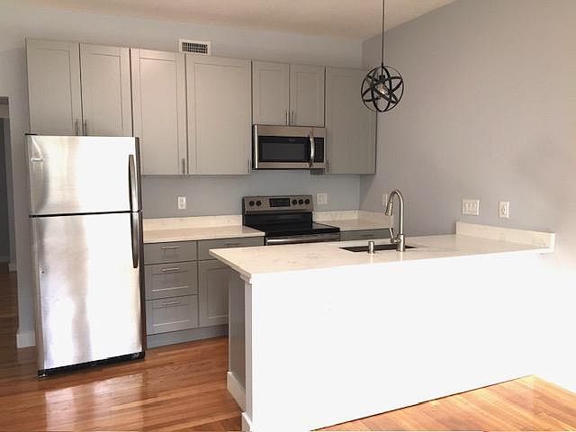 NO FEE! Central AC, Hardwoods, Bay Windows, In unit laundry and 10 Foot Ceilings. Pet friendly and includes parking. Common outdoor space. Available June 1. Owner pays for water, sewer, trash removal, snow plowing.
