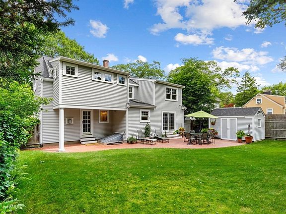 Thoughtfully designed, this impeccable Colonial delights at every turn. Updated over time, every element is intentionally designed with daily living in mind for active, organized families. The sunlit kitchen features custom cabinetry, island seating, generous storage & opens to a den with built-ins and TV. A glass slider leads to a charming garden patio and fenced yard with shed. The classic front-to-back living room w/ gas fireplace and formal dining room evoke true New England charm. The serene primary suite boasts a walk-in closet, tucked-away office, luxe bath with soaking tub, and oversized shower. A standout is the private guest suite, accessed by its own staircase yet seamlessly connected to the 2nd floor. The polished lower level includes a finished family room with built-in desks for work or study, a smart laundry area, and a tidy workroom. In a welcoming neighborhood near parks, playgrounds, top schools & highways. Come experience it for yourself!