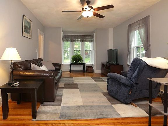 This updated, spacious Merrimac home has 6 bedrooms & 2.5 baths. A beautiful center stairway and refinished hardwood floors welcome you into the home. A bright living room features a bay window and opens to large dining room, creating easy flow for living and entertaining. The generous kitchen has an eat in area, gas stove and plenty of counter space. 1/2 bath and laundry are off the kitchen. On the other side of the center hallway is a bedroom with built in window seat in bay window. Off the bedroom is a huge sunroom that features new carpeting, 2 ceiling fans and a sliding door out to backyard and deck. An updated full bath with new vanity, clawfoot tub, and shower complete the first floor. The 2nd floor has 5 bedrooms, 2 with wood floors and bay windows, a full bath & second kitchen. Outside the yard has been cleared & features a covered deck, patio & large carriage house that offers tons of storage. Close to Lake Attitash, walking trails, shopping, restaurants and highway access.