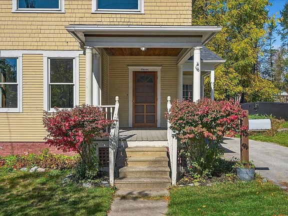 Tucked away on a dead-end street, this inviting home offers the perfect blend of comfort, character, and convenience. Enjoy the landscaped front yard, a backyard with a privacy fence, and easy access to Rotary Park—just steps away for playtime on the playground, a match on the tennis courts, or open field activities. Inside, the home balances a casual warmth with timeless charm. The welcoming front entry leads to a cozy living room and a spacious dining area filled with natural light. Fresh new carpeting complements the gorgeous natural woodwork throughout. The large kitchen features oak cabinetry with crown molding, a pantry cabinet, new flooring, and plenty of room to add an island. A built-in desk area adds convenience for meal planning, work-from-home needs, or keeping the household organized. Upstairs, you’ll find three comfortable bedrooms—including a spacious primary with generous closet space and wood floors. A full bath completes the second floor. Smart upgrades enhance both comfort and energy efficiency, including newer Andersen windows, attic insulation, basement weatherization, a brand-new heat pump water heater, and the installation of a wood stove that has been recently cleaned and is ready for the heating season. Two classic covered porches, a paved driveway, and a detached garage—a must for Vermont winters—add to the home’s appeal. With its prime location, thoughtful updates, and welcoming feel, this property is truly a place to call home.