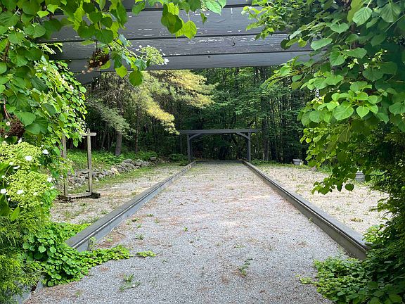 This wonderful hip roofed two-storied Colonial sits on 3.12 acres of wooded land on Norway Hill overlooking Hancock village. You enter through a glassed-in porch on the west side of the house, connecting into an expansive living room, with hardwood floors and fireplace then flowing into ample dining room, with fireplace. The kitchen has granite countertops, framed by a brick hearth with propane range, dishwasher, refrigerator and overlooks a breakfast nook and 1/2 bath. The family room features a glass solarium, with sliding door opening to a multi-level outdoor deck. You head through the archway upstairs. The 2nd floor hosts a primary bedroom complete with ensuite 3/4 bath and lots of closet space. Down the hall is a corner bedroom with nice cross ventilation and large windows. A full bath sits at the end of the hall with a smaller bedroom adjacent. Next door is a brightly lit office. At the head of the back stairway is a carpeted billiard room with separate propane heat. There is even a chair lift on the back stairs. The back hall has a laundry and entrance to the two-car garage and workshop. A full house 20kW propane generator system ensures year-round comfort and convenience. The grounds are lovely with a semicircular driveway, mature landscaping, and a very special regulation-sized bocce court, with end pergolas and scoreboard. Seller to install new septic system and upgrade electrical panel.