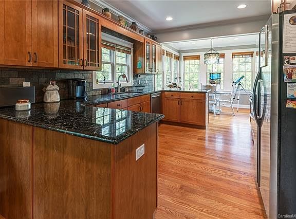 Elegant and private home 1min to Main St Weaverville at end of culdesac. Lovingly maintained, main level has a great open floor plan with living/kitchen/dining space, granite counters, maple cabinetry & beautiful hardwood floors using oak from trees on-site! Two-car garage enters to laundry room and main hallway so you can turn to either to large master on main, additional bonus room or general living areas. Upstairs 2BR plus bonus room and 3rd full bath. Lower level is super huge and open - the perfect space for entertaining as man-cave or home theater with wet-bar/kitchenette, dining area and gathering space complete with 2nd fireplace and walk-out to back yard and lower level deck. Great location to Main St Weaverville or all things Asheville in 15minutes. A must see!