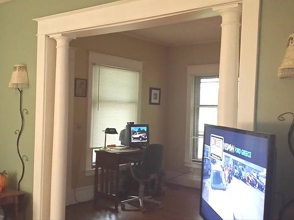 4 BR home, vinyl sided. Newer tear off roof. Really nice hardwood floors, front foyer features open staircase. Columns separate foyer and livingroom. Front porch needs work but this is a good price for this home...