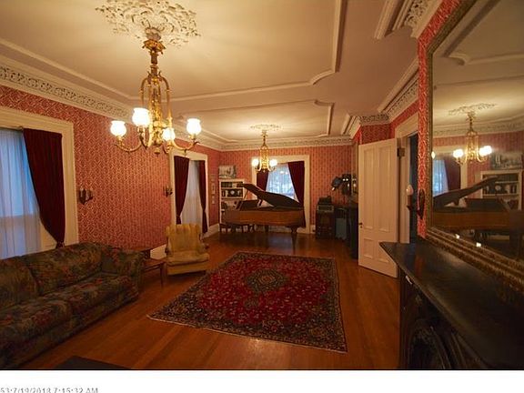 Magnificent 1880 Victorian home with all original features: high ceilings, double doors, crown moldings, velvet wallpaper, wood floors! Along with 2 other apartment units that pays your mortgage, this main building has 5 bedrooms, new kitchen, dining room, living room, ballroom, sun porch, 2.5 bathrooms, 2 garages, and a large basement ready to be converted into living space! Be prepared to walk in and fall in love.