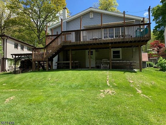 Lake community home with a deeded dock on Greenwood Lake. This 4 Br 2.5 bath has been under the same ownership for many years and needs your finishing touches to make it a gem. Many original interesting features Knotty pine throughout, nice size bedrooms and large rear deck. Master has half bath. Full finished basement with laundry and work shop and woodstove.