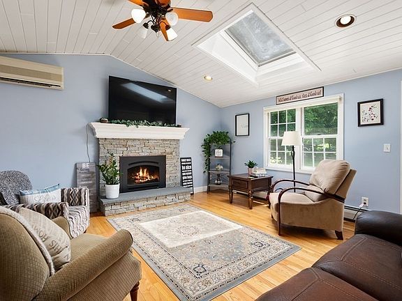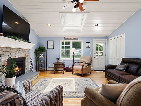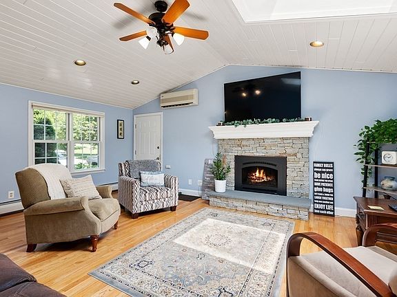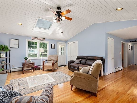 A HOME for Entertaining! Family Room with vaulted ceilings, skylight, beautiful stone fireplace, doors to front & back yards & open to the ...Kitchen w/ breakfast island, loads of white cabinetry & granite counterspace! HUGE Dining Room has a wall of built-in cabinetry & sliders to the…Bright & Sunny heated Sunroom which features a vaulted pine ceiling, 2nd fireplace & glass door to the back deck. Front to back Living Room with sliders to the rear deck, & ½ Bath finish the 1st floor. Spacious Main Bedroom with walk-in closet & en-suite Bathroom. Three additional Bedrooms & another full Bath complete the 2nd floor. Step outside to your park-like yard, inground pool with stamped concrete patio, and a gardener's delight- vegetable & flower gardens, as well as fruit trees/bushes! Other features: New (2022) Solar Panels (Earn a credit rather than pay electric), hardwood & tile floors, new roof (2012) public water & sewer & much more! Fantastic location in a neighborhood, on an amazing lot!
