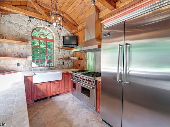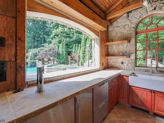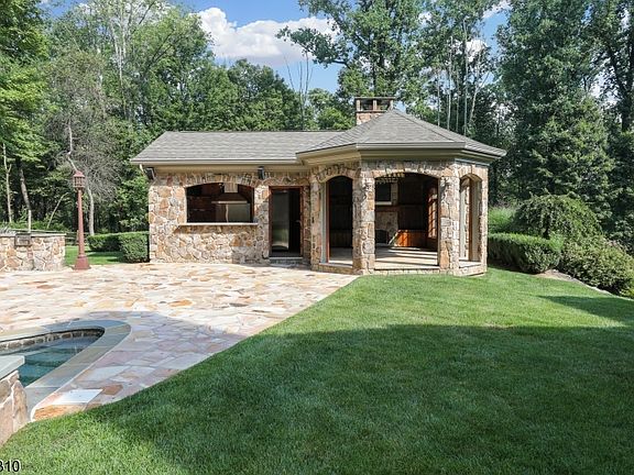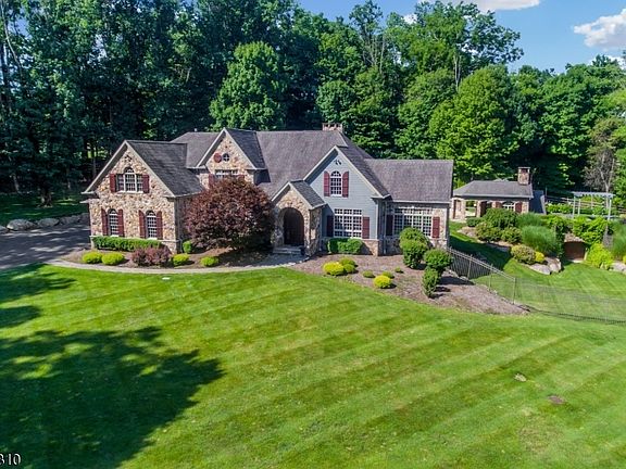 Welcome to an exceptional Georgian Colonial where amazing exterior spaces rival the equally amazing interior spaces. Nestled on just over three acres, this gracious residence has all the amenities one would expect to find in a premier luxury home, plus a few surprises. Imaginative details include an underground tunnel leading to fabulous resort-style grounds. Custom built in 2004, the home is introduced by a two-story entryway with a curved staircase. Design elements such as beautiful hardwood flooring and deep crown moldings make this home special. Oversized windows fill the interior with sunlight and frame serene views of the grounds. Six fireplaces include one in the master bedroom and one in the basement. The expansive kitchen offers high-end appliances, granite countertops and a generously-sized breakfast area. The kitchen opens to a family room anchored by a wood-burning fireplace edged by a custom surround as well as sunny Palladian windows. Just off the family room is a fireside home office which adjoins the sunroom. Upstairs are five en suite bedrooms, including the master retreat featuring a gas fireplace. The finished walkout basement has an entertainment-friendly cherry bar, billiards room, media room and full bath. This is where the fun begins: from the basement, a tunnel leads to a sound-insulated room once used as a band's music studio, but it could also be used as a crafts room, yoga/meditation space or dance studio. From there, a stairway leads to the outdoor living spaces which are one-of-a-kind. Clad in stone, the pool house has a full bath and exquisite outdoor kitchen featuring a Viking refrigerator, six-burner range, kegerator, farmhouse sink and dishwasher. There is also bar seating and a view of the pool. The gathering room portion of the pool house has a wood-burning fireplace and outdoor television. Archways are equipped with roll down metal doors to protect the interior from inclement weather. Beneath the pool house, a garage easily stores pool furniture and equipment. The freeform pool has a jetted spa, waterfall and built-in seating along the perimeter. A slide that tunnels beneath a rock formation adds an element of fun. The patio features two built-in gas grills and a fire pit. Adjacent to the pool house is a pergola-covered raised garden, an ideal spot for entertaining. Located on a cul-de-sac, the lush property is fenced, wooded and has plenty of room for play. Minutes from I-78, it provides a central location for commuting, schools, shops, restaurants and recreation in Hunterdon County's scenic Lebanon.