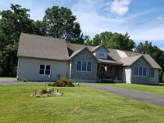 Located in the foothills of the Catskills. Bloomingburg NY. Custom built home two story ranch features 3 BR on main floor and 2 large rooms on the second floor with sky lights and window box seating. Home features large open floor plan, 9 ft ceilings, hardwood flooring, recessed lighting and ceiling fans. Large master suite includes cathedral ceilings, walk-in closet with his/her built-in dresser/wardrobe; oversized sliding patio door leading to large covered porch. Spacious fully tiled master bath with walk-in shower and full linen closet. Large rooms, eat in kitchen with nook and bar seating with dropped counter; seating for 12; walk-in pantry, laundry room with utility sink, formal dining/den with cathedral ceilings; living room with gas fireplace, double oversized sliding patio doors leading to rear oversized private covered porch overlooking large backyard. Basement readly to be finished with walk out stairs. Transfer switch for generator.