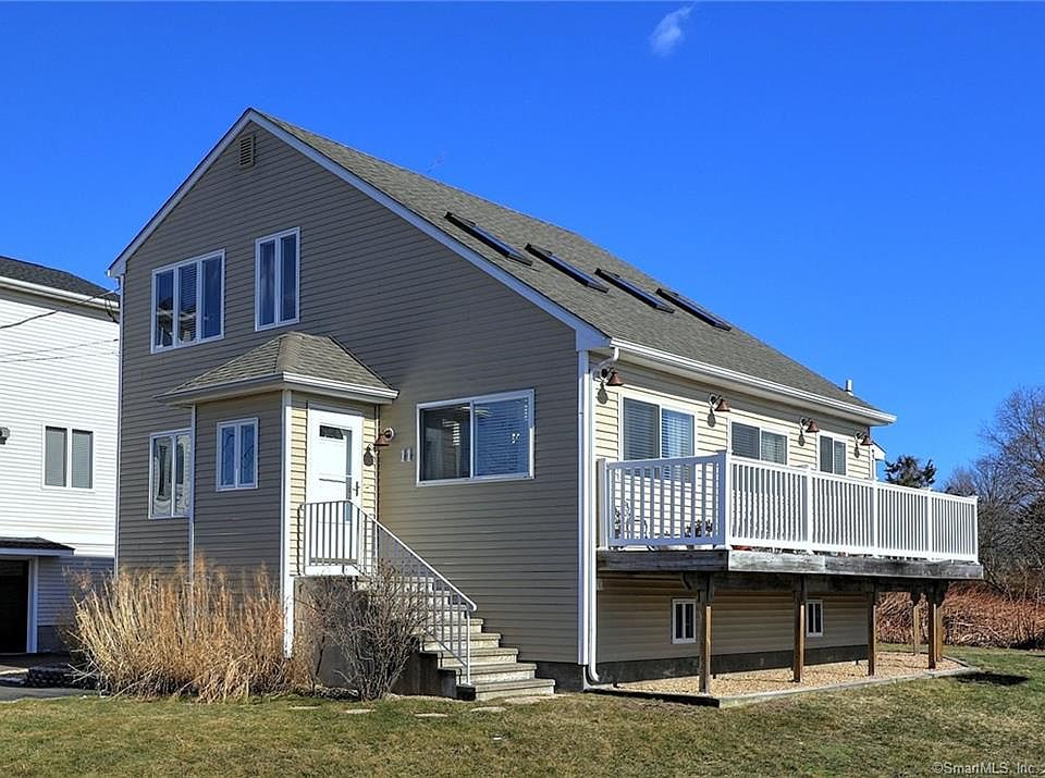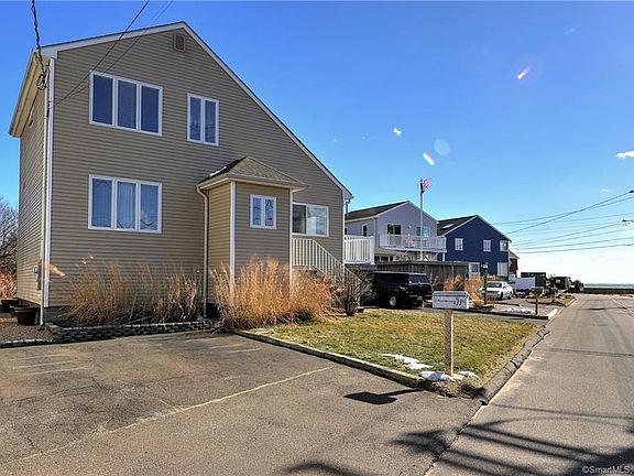 Located in "Morgan Point", enjoy captivating water views of Long Island Sound and tranquil tidal marsh from most rooms of this Contemporary Cape across from Shell Beach. This shoreline home, with southwest exposure, features an open & bright first floor layout with a living room/dining area combo, fully equipped kitchen, cathedral ceiling with skylights, large master bedroom, full tiled bath, laundry and mechanicals. The second level features 2 additional bedrooms, full tiled bath and balcony. A wonderful screened in porch and wrap around deck are the perfect spots to enjoy sea breezes day or night. Deeded beach rights. Convenient location just 15 minutes to Yale, Downtown New Haven, hospitals and Union Station. Seller has an Elevation Certificate and a recent flood insurance estimate for under $900 per year.