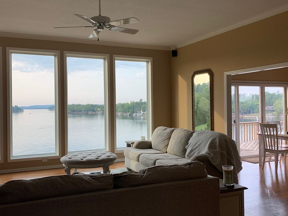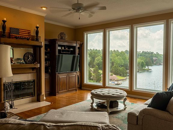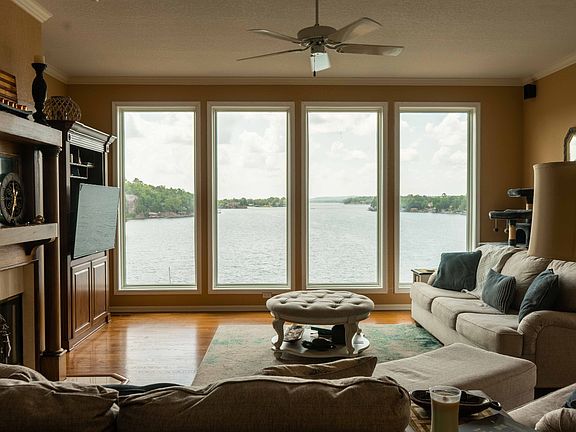 Waterfront home with panoramic views sunrise to sunset. Sitting on a prominent point on the shoreline of Lake Balboa, the largest of 11 recreational lakes in HSV, AR. This home features floor to ceiling windows in the living area filling every corner with natural light. The views from this lakeside paradise continue through out the home with water visible from almost every room! Real hardwood floors are richly framed with custom cabinetry alcoves and a beautiful antique fireplace mantle. Durable granite countertops are used in the kitchen and bathrooms. The lower level is equipped with a wet bar and wood plank ceramic tile, so enjoy a pool tournament with your friends and family. And the sauna room might be appealing for some! This home is situated on 370 feet of shoreline with a partial concrete sea wall. Swim or fish from the covered boat dock that includes a lift for your boat. The sand at Balboa Beach is only minutes by car, or paddle your kayak for the fun workout! Fourth of July fireworks are a real treat for guests and family from the upper and lower decks that are partly covered. Gorgeous landscaping that is sure to have heads turning is watered from the lake with a timed system. And you can feel confident in the 9 Anderson windows installed 2024, the roof on home and boat dock 2023, the skylights 2023, the HVAC with transferable warranty 2021, and a GenerLink attached to the electric meter. There's something for everybody, so don't miss this rare opportunity to own this beautiful home in Hot Springs Village.