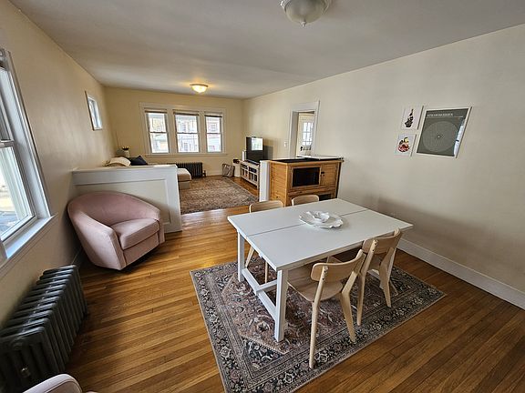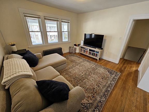 Gorgeous sun soaked top floor apartment available for June first! This apartment has beautiful hardwood floors and high ceilings. There are tons of windows, large bedrooms with ample closet space and a recently renovated bathroom. The kitchen comes with a gas stove and dishwasher. Exclusive free washer and dryer in the basement. You have 2 porches, a front porch over looking to suburban feeling Oak Square st and a rear porch over looking the back yard. 1 outdoor parking space included in the rent in the driveway. The heating is gas, which warms the unit through radiators. You have an extra office space to accommodate a work from home set up. There is a living room and dining room with a China hutch! Located near Nonantum Rd you easy access to multiple shops, grocery stores, gyms, restaurants as well as access to main highways, Newton, Watertown, Cambridge and Downtown and the MBTA.