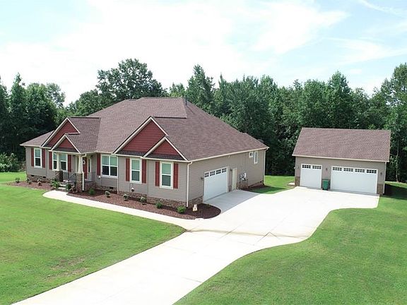 The Farms at Spearman Road is in a country setting with big lots and custom-built homes in the much-desired Wren School District. Great location close to I-85. These sellers built their dream home to raise their family in, but now have to go back home to take care of aging parents. 2018 custom home sits on 1.65 acres and offers so many upgrades it's hard to list them all, but I'll try. 2525 sq. ft. 4 bedroom, 3 full baths, living room, dining/play room, office, all on one level with a true split floor plan 2 bedrooms are off one hall way and share a full bath and the other 4th bedroom is tucked off a foyer/hall way and has a full bath, perfect for a guest room for visitors and guest bath. Home and detached garage has vinyl siding with stone accents, walk in crawl space for extra storage. Granite in all bathrooms, waterproof, scratch proof porcelain plank flooring throughout the living areas; it looks just like hardwood flooring. Custom cut Levolor blinds on all the windows, even the garages. All bedrooms have walk-in closets, and all baths have linen closets, oil rub bronze lighting and plumbing fixtures, Stone backsplash in kitchen, SS appliances, Seller is willing to include refrigerator, washer, and dryer. 9' ceilings, crown molding, cathedral ceilings in the living room and an open floor plan make it great for entertaining. The master has tray ceilings w/large dream bath suite complete w/ his and hers closets, double sinks, huge porcelain tile walk in shower with frameless glass door, w/garden tub with sprayer, and water closet. Tankless water heater, gas heat, ceiling fans in all bedrooms, back patio, dining/play room, office, and living room. Mosaic tile backsplash in the kitchen, walk in pantry, large island and a great flowing kitchen. Now a little about the outside, both the front porch and the back porch have wrought iron fences and railing, with optional indoor gate at the front door for kids or your fur babies. His and Hers garages the attached 2 car garage is 30x22 and the detached 3 car garage is 32x30 w/9' doors to fit that boat you've been dreaming of (at least that was His vision) both are completely finished w/sheet rock, painted and w/electrical. Hot & cold water spickets in the garage, outside lights on all corners even the detached garage, 3-sided enclosed patio wired for outdoor tv, newly added block retaining wall, septic tank was installed to the left of the home to allow for the installation of a in-ground pool (seller has plan already drawn) lot has mature trees and offers great sun to the east and shade to the west. Solar panels have been installed on the back of the home, saving so much money, power bill runs $42.00 mo. after selling back power to the power company. Solar panels are paid for and convey with the home. Yard has just had 9 zone full yard irrigation system. Call today to see this dream home just waiting for its new family.
