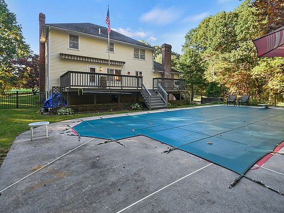 Discover this stunning colonial home offering over 3,000 sq. ft. of living space, blending charm and functionality. The heart of the home is the large kitchen, featuring an eat-in area with a kitchen island, stainless steel appliances, and direct exterior access to the inviting gunite & tile in-ground pool—perfect for entertaining! The living room features a wood burning fireplace, wainscoting and chair rail, crown molding and more. The dining room is bright and airy with hard wood floors. Family room has cathedral ceiling with exposed beams, another fireplace and gleaming hardwood floors. Upstairs, you'll find spacious bedrooms with ample storage. The lower level has a huge Bonus room ready to make it yours. The home also includes a convenient 2-car under garage and a fenced-in yard, providing privacy and huge desk space for outdoor enjoyment. This is a must-see home in Scribner Hill Estates!