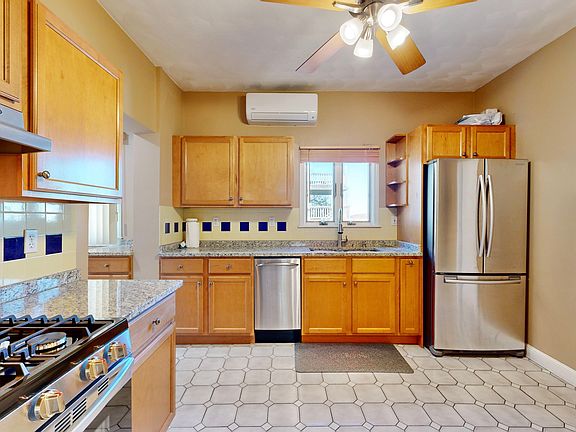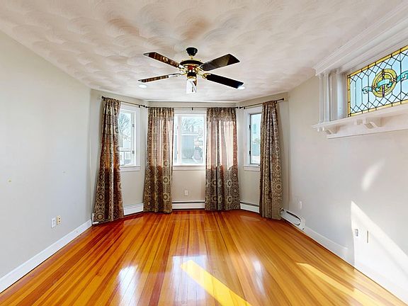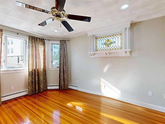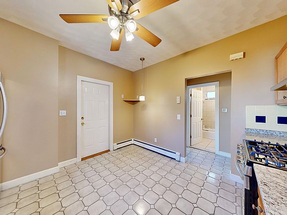 This apartment offers a harmonious blend of comfort and functionality across its single-floor layout. The space comprises of two bedrooms, one bathroom, living room, office/bonus room, and kitchen, providing ample room for various living arrangements. Upon entry, you're greeted by a welcoming foyer with patterned tile flooring and a convenient corner shelf. The living areas showcase stunning hardwood floors that extend throughout most of the apartment, creating a warm and inviting atmosphere. Large windows in each room flood the space with natural light, while ceiling fans ensure comfortable air circulation. The primary bedroom features soothing blue walls and direct access to an outdoor deck, perfect for enjoying morning coffee or evening relaxation. The second bedroom, equally well-lit, offers versatility as a guest room or home office. The kitchen is a standout feature, boasting honey-colored wooden cabinetry, granite countertops, and stainless steel appliances, including: gas stove, dishwasher, and refrigerator. Blue and white tiled accents add a touch of personality to the space. The bathroom is efficiently designed with modern fixtures and a combination tub-shower. Notable features include multiple closets for ample storage, baseboard heating for year-round comfort, a mini-split A/C, and a mix of tile and hardwood flooring throughout. The apartment's layout, as seen in the 3D floor plan, ensures a smooth flow between rooms, making it ideal for both daily living and entertaining. The apartment is located approximately .1 mile walking distance to the Suffolk Downs T Station. No smoking. Tenant to pay first month's rent and last month's rent prior to move-in. Tenant to pay all separately metered utilities. Upon acceptance, Tenant to pay Broker's fee equivalent to one month's rent. Landlord prefers a tenancy-at-will. Washer and dryer are not the Owner's responsibility.