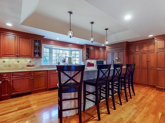 This breathtaking home, exquisitely remodeled by Mitchell Construction, is located on an expansive, professionally designed, 1.4-acre lot. The high-end finishes and hardwood floors and are showcased throughout. The first floor features a gourmet kitchen with numerous upgrades: professional appliances - double oven, Wolf 6-burner gas range - custom cabinetry and island, granite counters, farmer's sink, wet sink, bar fridge, and a spacious dining area. Adjacent is a fireplaced front-to-back family room with a bay window, hi-end millwork, and French slider access to the large composite deck, patio and fire pit. Also on this level: a private home office, front-to-back living room and dining room - perfect for entertaining. Upstairs the master suite has a walk-in closet, a newly renovated bath with a quartz double vanity and tiled shower. Additionally, there are 4 large bedrooms and a renovated hall bath with quartz vanity & ship lap. Basement features phenomenal media, exercise & game room