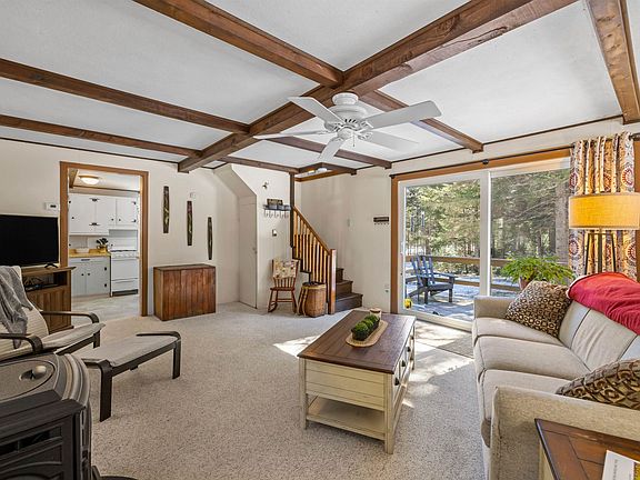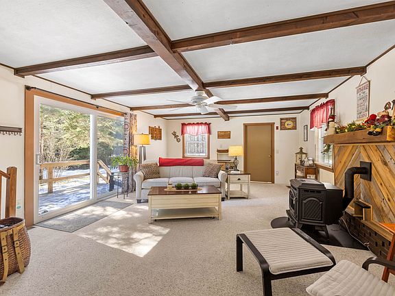OPEN HOUSE RESCHEDULED TO SUNDAY, 3/24, 9;30-11:30!! This delightful cottage from the 1940s has been meticulously maintained and presents an outstanding opportunity as either a secondary residence or a primary dwelling! Step inside to discover a spacious 24x16 living room adorned with wooden ceiling beams, a centrally positioned pellet stove, and sliding doors leading out to a generously sized deck. Continuing through, you'll find the kitchen and dining area boasting charming country-style wooden cabinets, a pantry, and a full-sized stackable washer & dryer discreetly housed within a custom-built cabinet. Also on this level, a 3/4 bath awaits, complete with a linen closet! Ascend to the upper level, where you'll find a single expansive room with a partition creating two distinct areas. Presently, one area serves as an office while the other functions as a bedroom, featuring classic painted wood floors. The eaves has been ingeniously converted into ample closet and storage space. Outdoors, the flat and expansive yard beckons, ideal for hosting family gatherings or cultivating a lovely summer garden. Additionally, there's a 1 stall garage with attached storage space and another separate building currently used as a workshop! Plus, the property's prime location places it just 0.5 miles from the "Welsh-Dickey" trailhead, 0.7 miles from the Mad River, and within 6 miles of both Waterville Valley and I93!