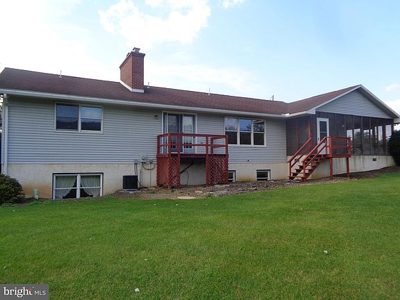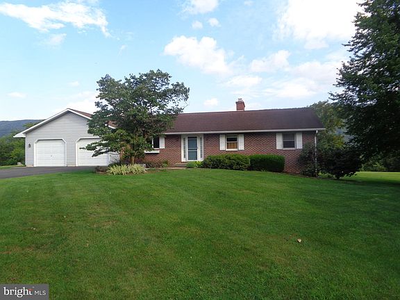 Remarkable view of Jacks Mountain from this 2 bedroom, 2 bath ranch with attached 2 car garage and semi finished basement. You'll love the vaulted ceiling with brick fireplace in the living/dining great room, 1st floor laundry located in hall bath, finished areas in basement, office and rec room plus spacious screen porch with scenic views. Open floor plan with entry leading into living/dining room combination and kitchen. Primary bedroom features attached bath with walk in shower. Basement rec room has a brick hearth for propane stove that is currently unhooked, and extra wide exterior staircase to side yard. Oversized 2 car garage offers rooms for work bench and/or motorized toys. This home adjoins 15.6 acres that are also currently for sale for $189900. ALL OFFERS TO BE SUBMITTED TO JAMI ZOOK BY 1:00 PM ON SATURDAY AUGUST 19.