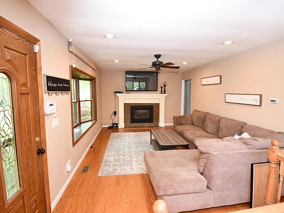 Move in ready 3-bedroom, 2 bath ranch home, nice size living room features gas fireplace with custom mantle. Eat-in-kitchen with sliders to patio and yard. Hardwood floors on main level. Lower level offers family room. Laundry room. Utility room and Storage room. 18x24 detached garage with loft. Private setting and quiet neighborhood. Close to all conveniences and major routes of transportation. Newer septic and AG oil tank.